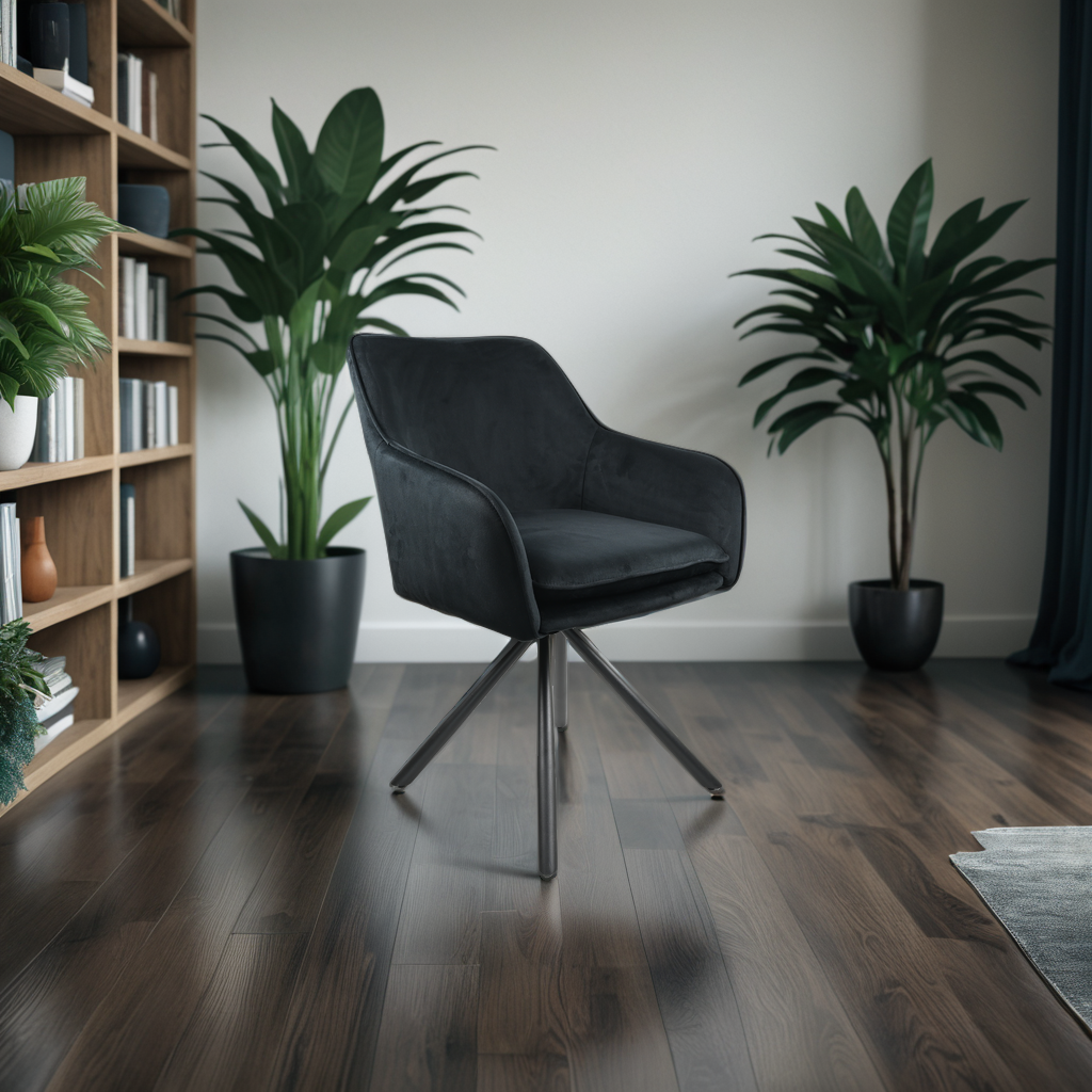Samt Armlehnenstuhl Grau oder Schwarz mit Metallbeinen