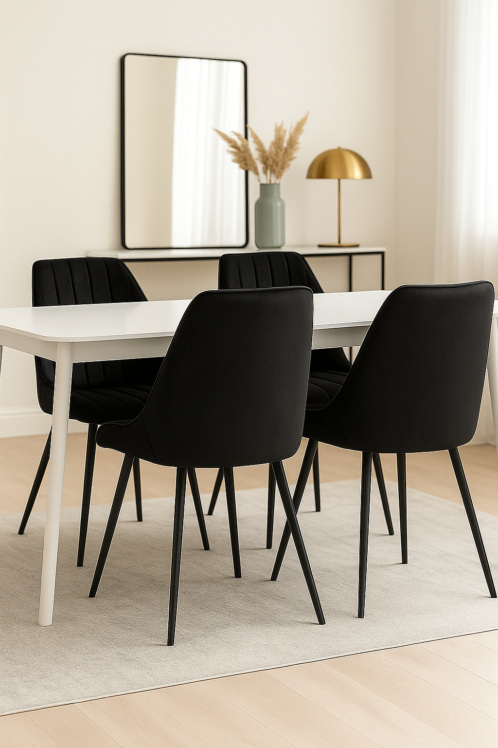 Esszimmerstühle Schwarz Samt mit Schwarzen Metallbeinen