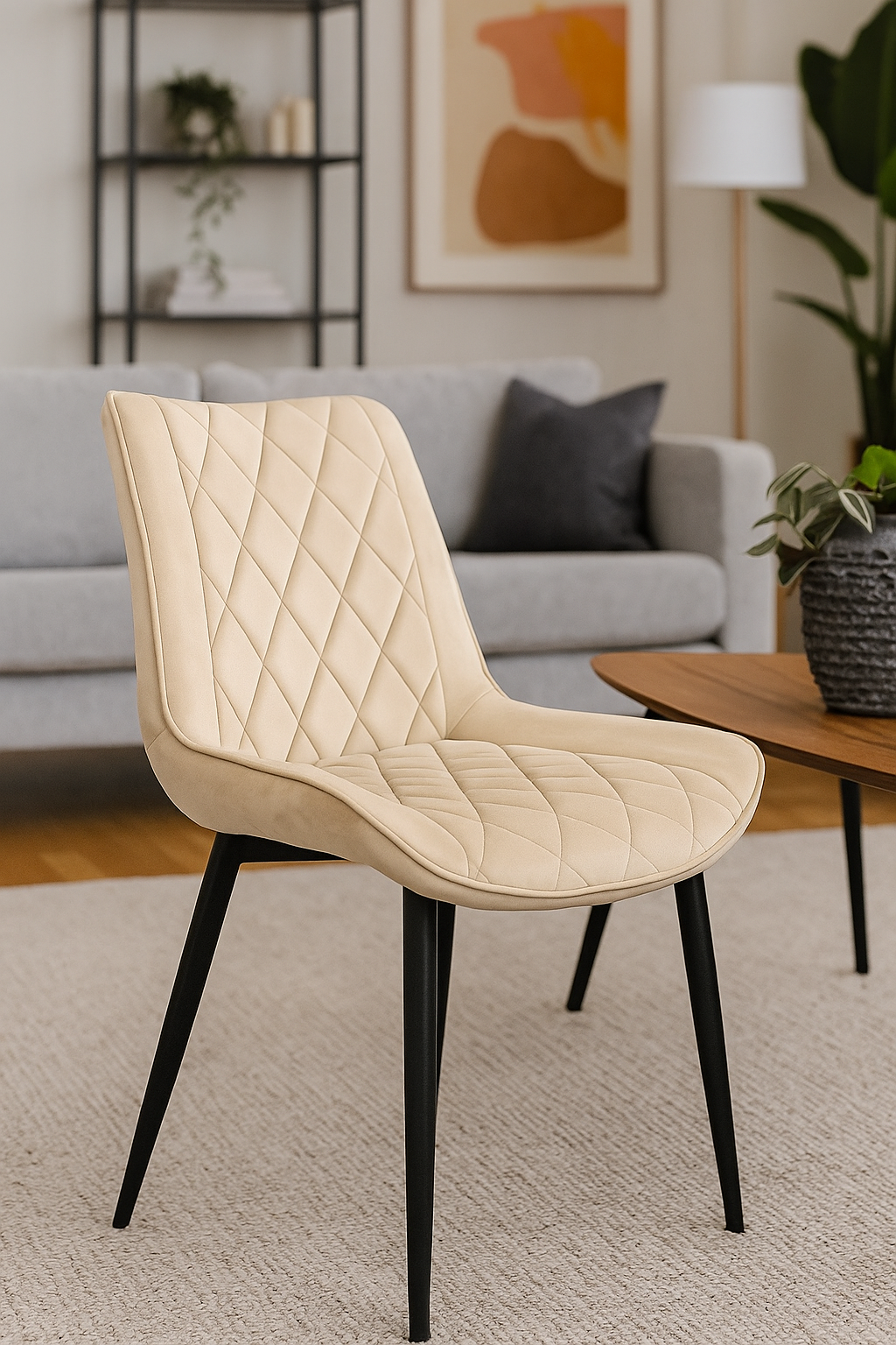 Esszimmerstuhl Samt Karriert mit Schwarzen Metallbeinen