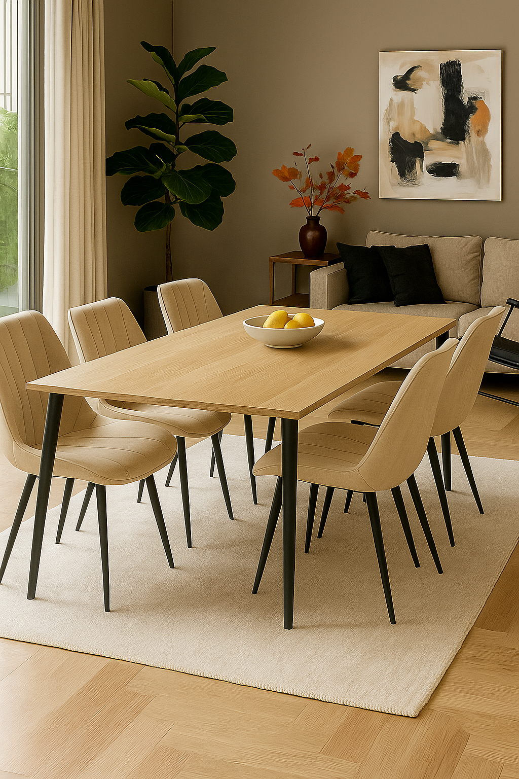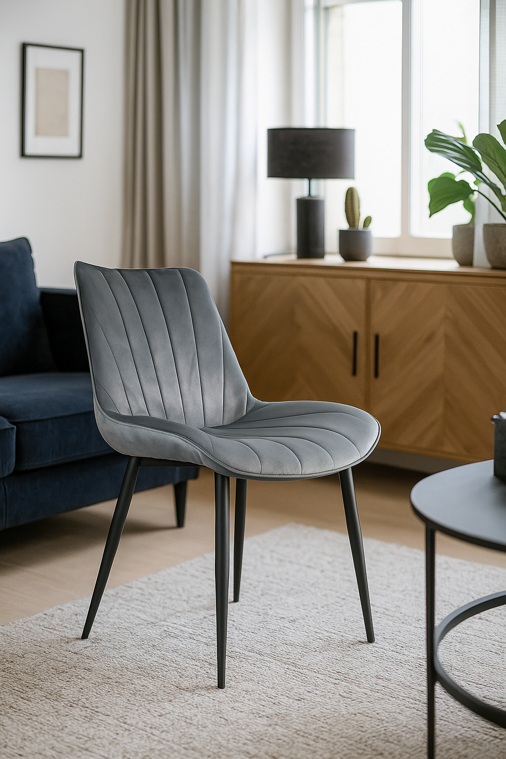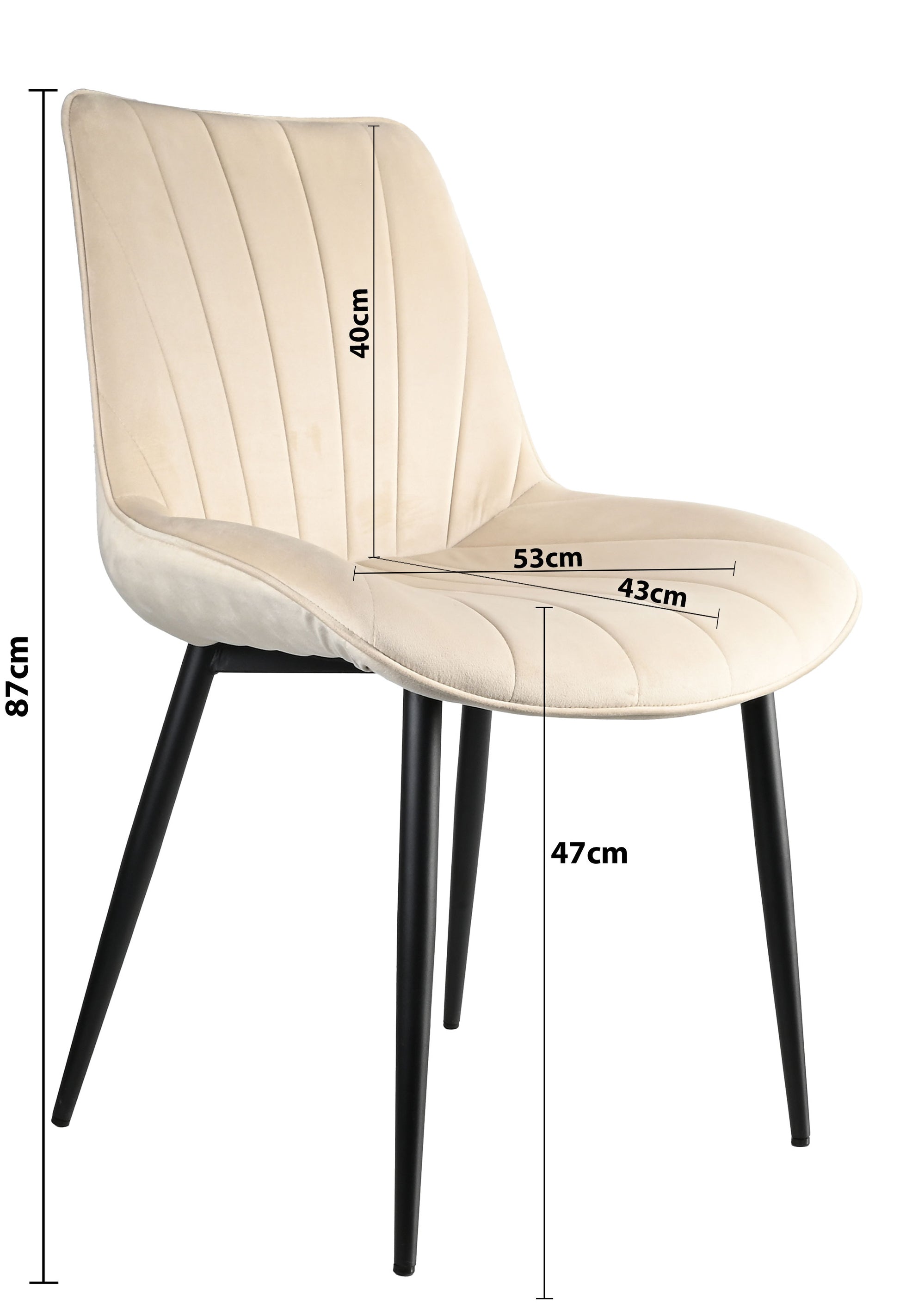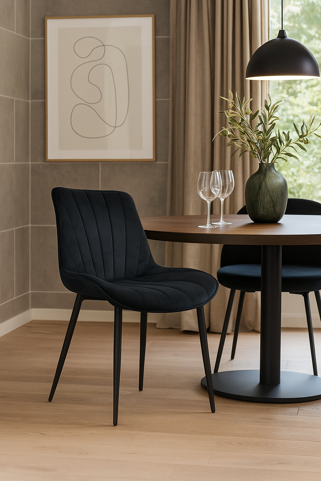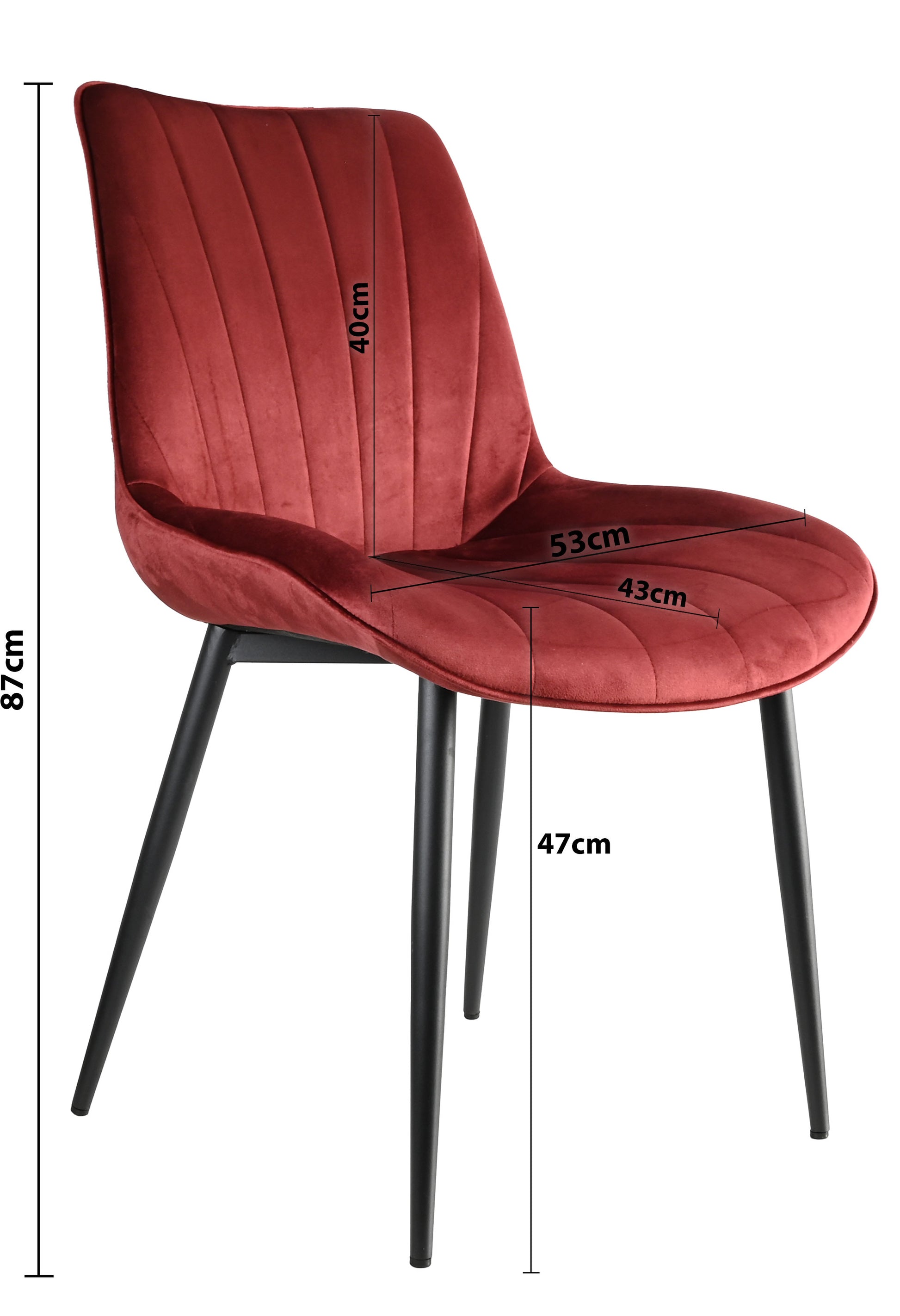 Esszimmerstühle in verschiedenen Farben mit schwarzen Metallbeinen. Die Stühle sind mit Samtstoff bezogen und sehr bequem. Die Stuhlbeine sind aus Stahl.